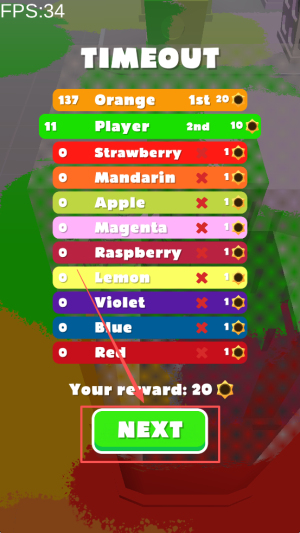 4、最后,查看游戏结果,点击“NEXT”按钮进入下一关或重新开始。