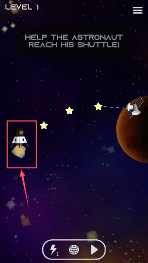 1、阅读提示“HELP THE ASTRONAUT REACH HIS SHUTTLE!”后轻点开始。