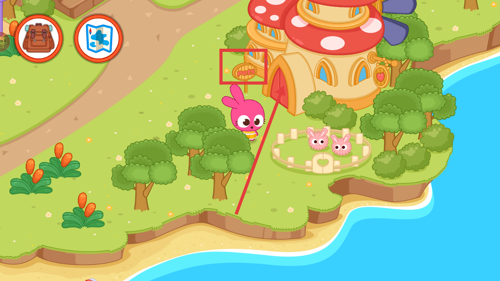 4、到达蘑菇形状的【PETS】屋,进入其中,开启宠物相关的游戏内容。