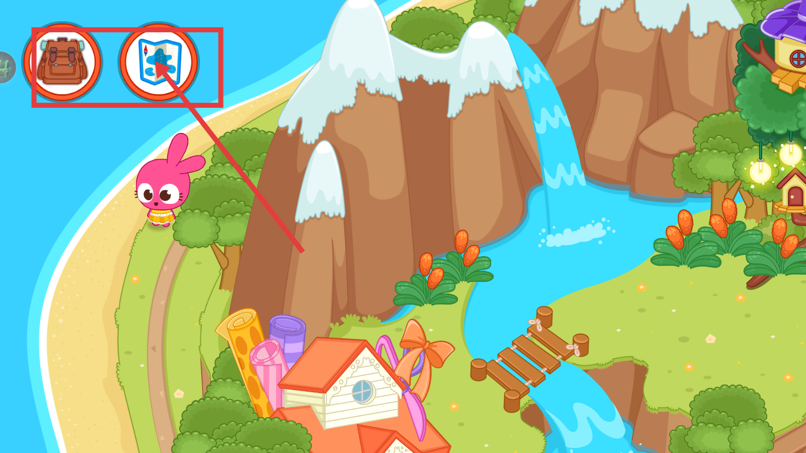 2、点击左上角地图图标,查看区域地图,规划探索路线,同时可查看背包道具。