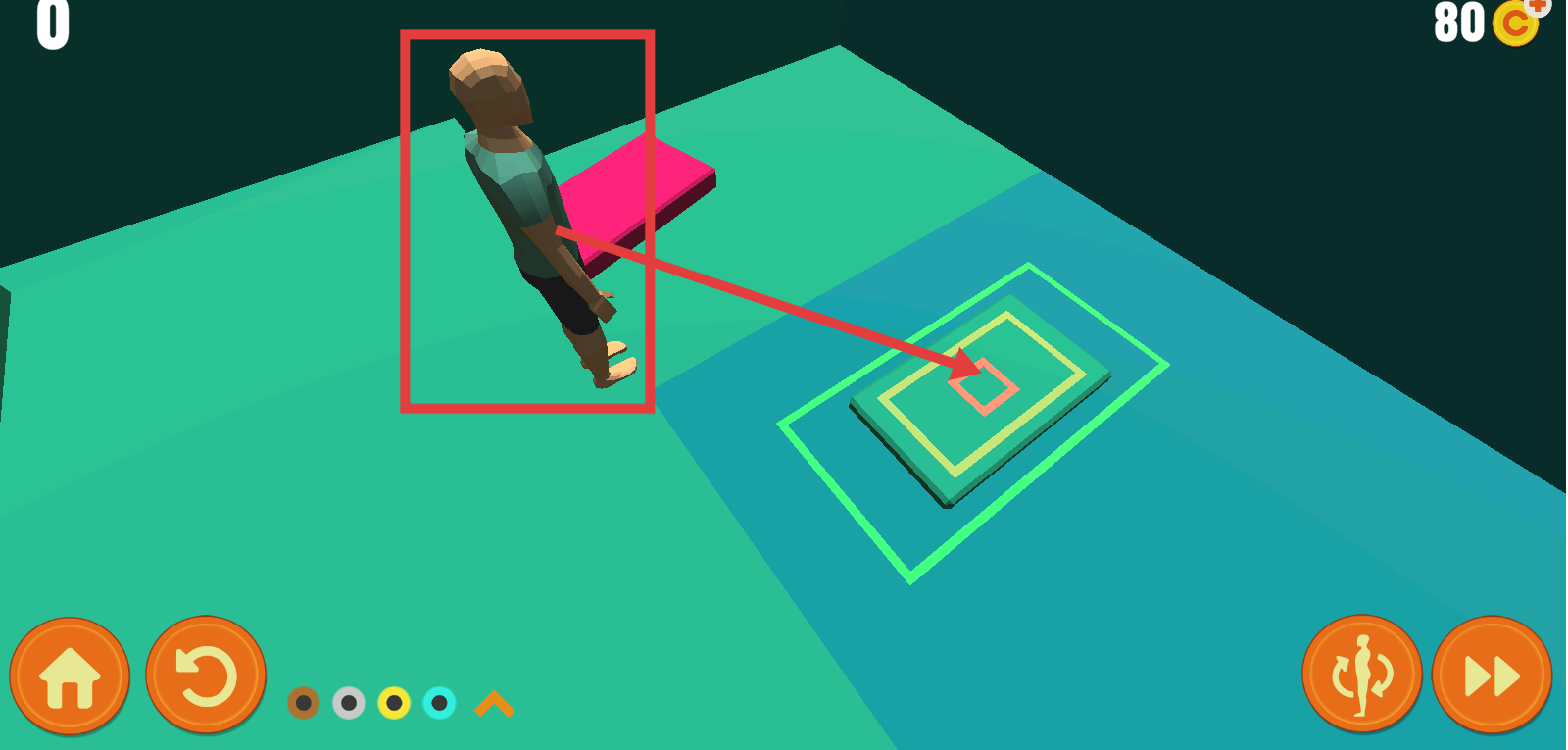 3、触发动作后,控制角色在空中完成翻转,瞄准粉色区域精准落地,以获取高额分数。
