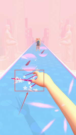 2、操控突破赛道:控制长指甲手在赛道移动,精准拾取道具让指甲持续变长,提升障碍击碎能力,稳步推进赛道进度。