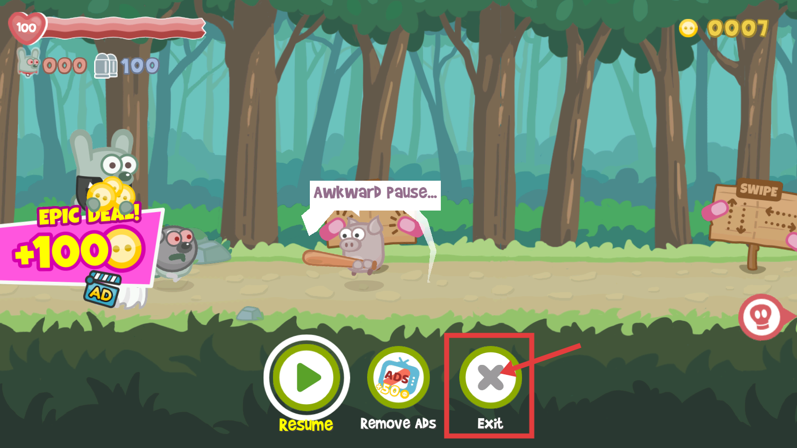 4、遇到暂停时,可点击【Exit】退出或继续游戏,根据需求选择,把控游戏节奏。