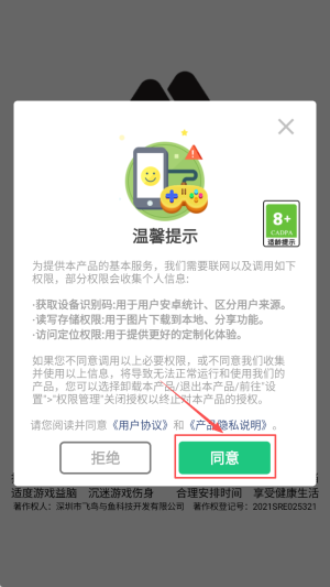 1、如何同意权限与协议:在温馨提示界面阅读条款后点击“同意”,完成授权并进入游戏。
