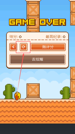 4、画面弹出GAME OVER立刻点去炫耀,顺带赐评分,新纪录直接上榜。
