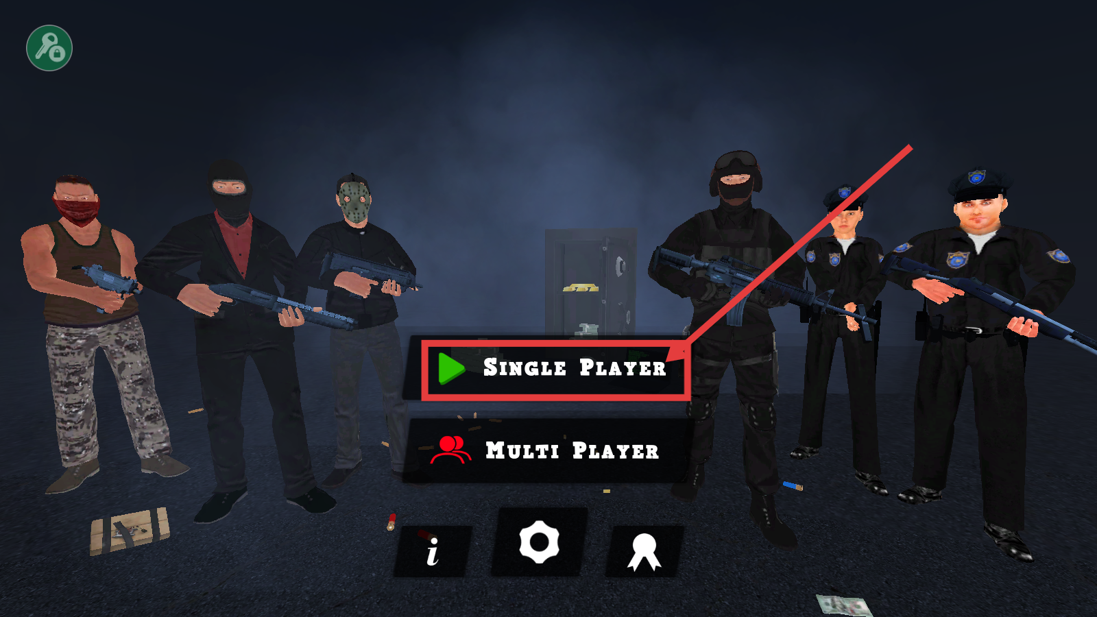 3、进入商店后,瞄准柜台目标人物,点击武器按钮发起攻击,快速推进剧情,完成当前场景任务。