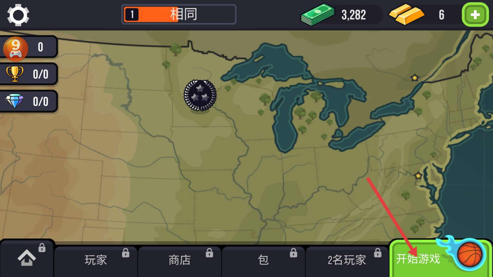 1、在地图界面点击【开始游戏】,进入四分之一决赛,开启篮球竞技挑战,积累资源提升战力。