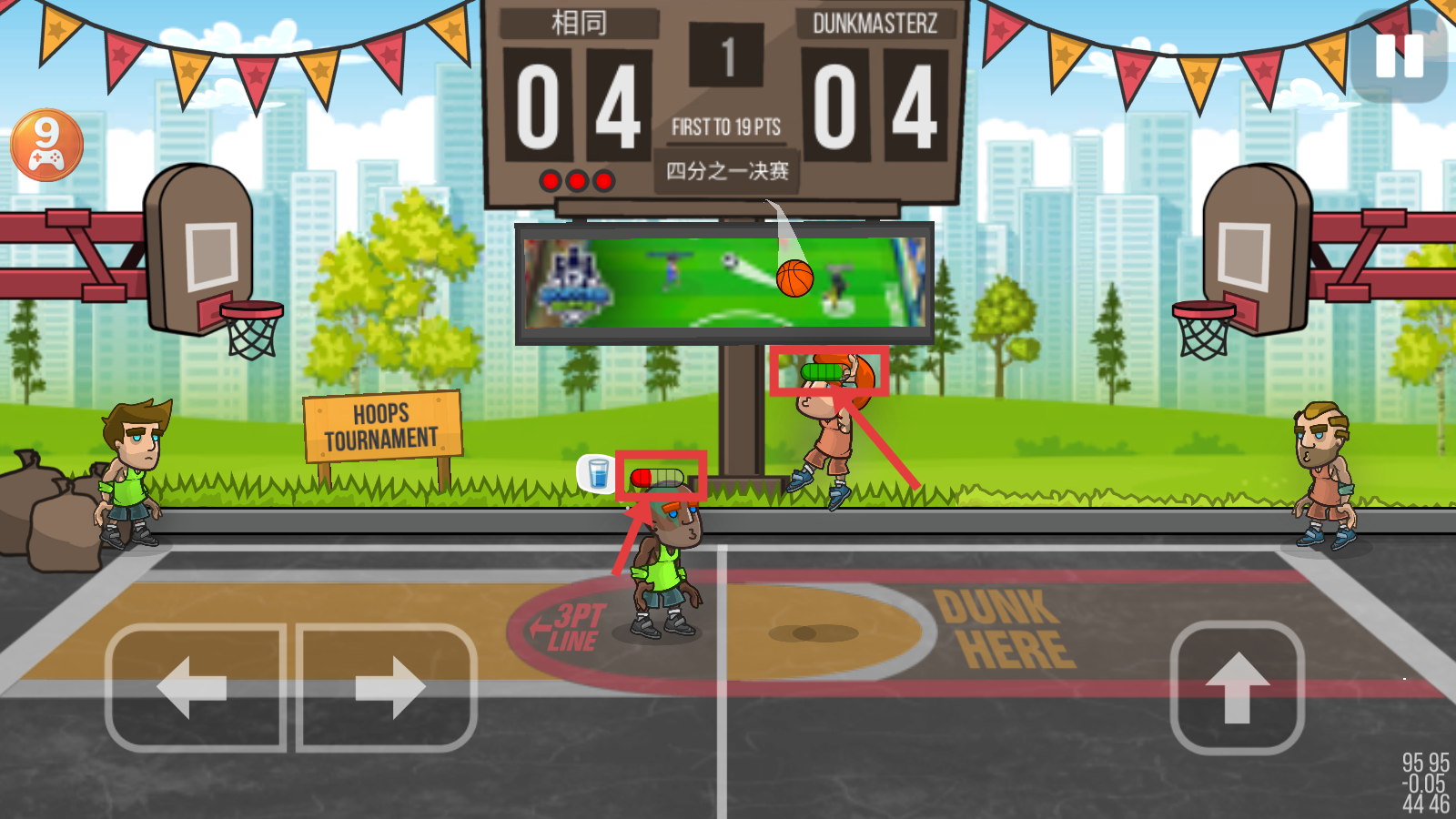 2、比赛时操作左右方向键移动,点击【向上】键投篮,关注球员状态,争夺分数优势。