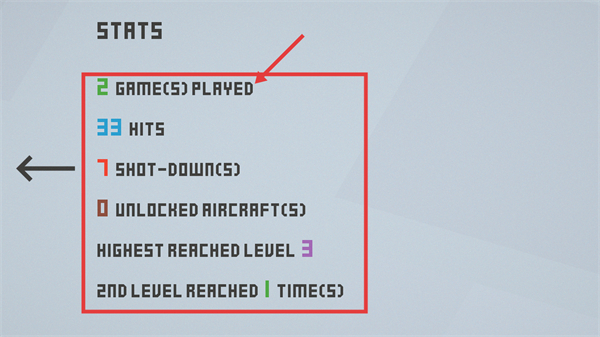 4、通过查看游戏统计数据(如游戏次数、击中数等),总结飞行技巧,提升游戏表现,解锁更多飞机和关卡。