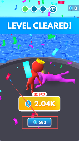 4、弹出「LEVEL CLEARED!」后点「$X3」,领取2.04K奖励并自动进下一关。