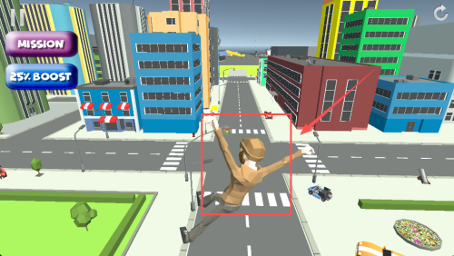 3、空中见MISSION:300,拖动角度让布偶飞向得分区。