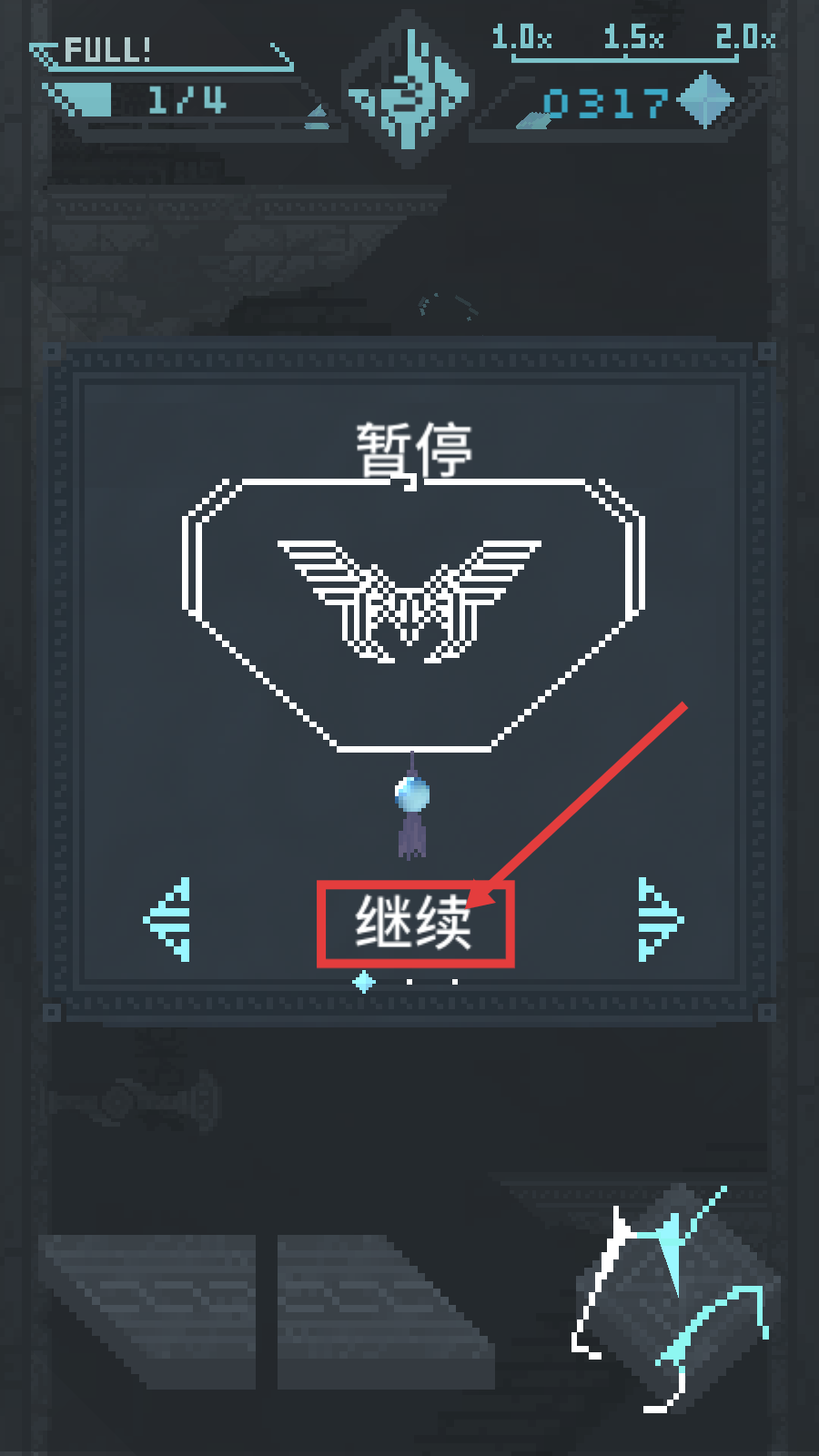 4、暂停后点击【继续】按钮,可恢复游戏进程,继续挑战以获取更高分数。