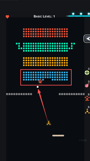 1、开启闯关准备:进入游戏后选择关卡,明确 “弹射小球消除所有砖块” 目标,熟悉小球操控与弹射的核心规则。