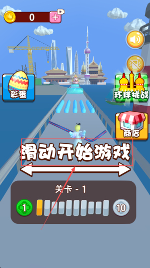 1、主页点击「滑动开始游戏」,手指上滑进入关卡-1,先避开商店与彩蛋。