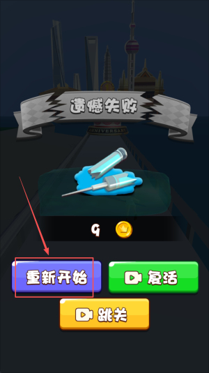4、若弹出「遗感失购」,点「D复活」续命;想省时间则按「D跳关」直达下一关。