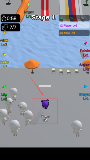 1、开启竞技准备:进入游戏后明确 “吞噬壮大、击败对手” 目标,熟悉橡皮人移动与吞噬规则,做好对抗准备。