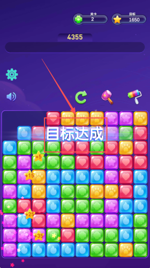 1、开启闯关准备:进入游戏后选择关卡,明确 “消除同色方块” 目标,熟悉点击操作与道具使用的核心规则。