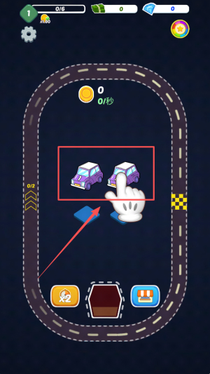 1、开启合成准备:进入游戏后明确 “合成汽车、完成闯关” 目标,熟悉汽车合并规则与停车、驾驶的核心操作。