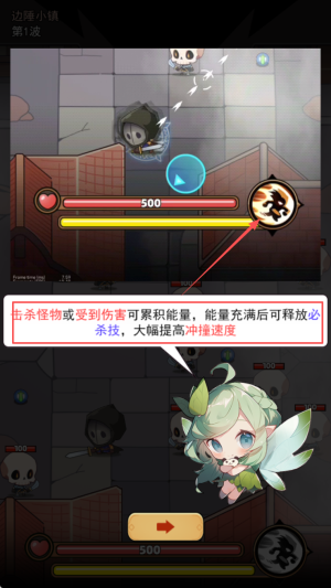 3、如何使用技能:击败怪物或受到伤害可累积能量,能量充满后可释放必杀技,大幅提高冲撞速度。