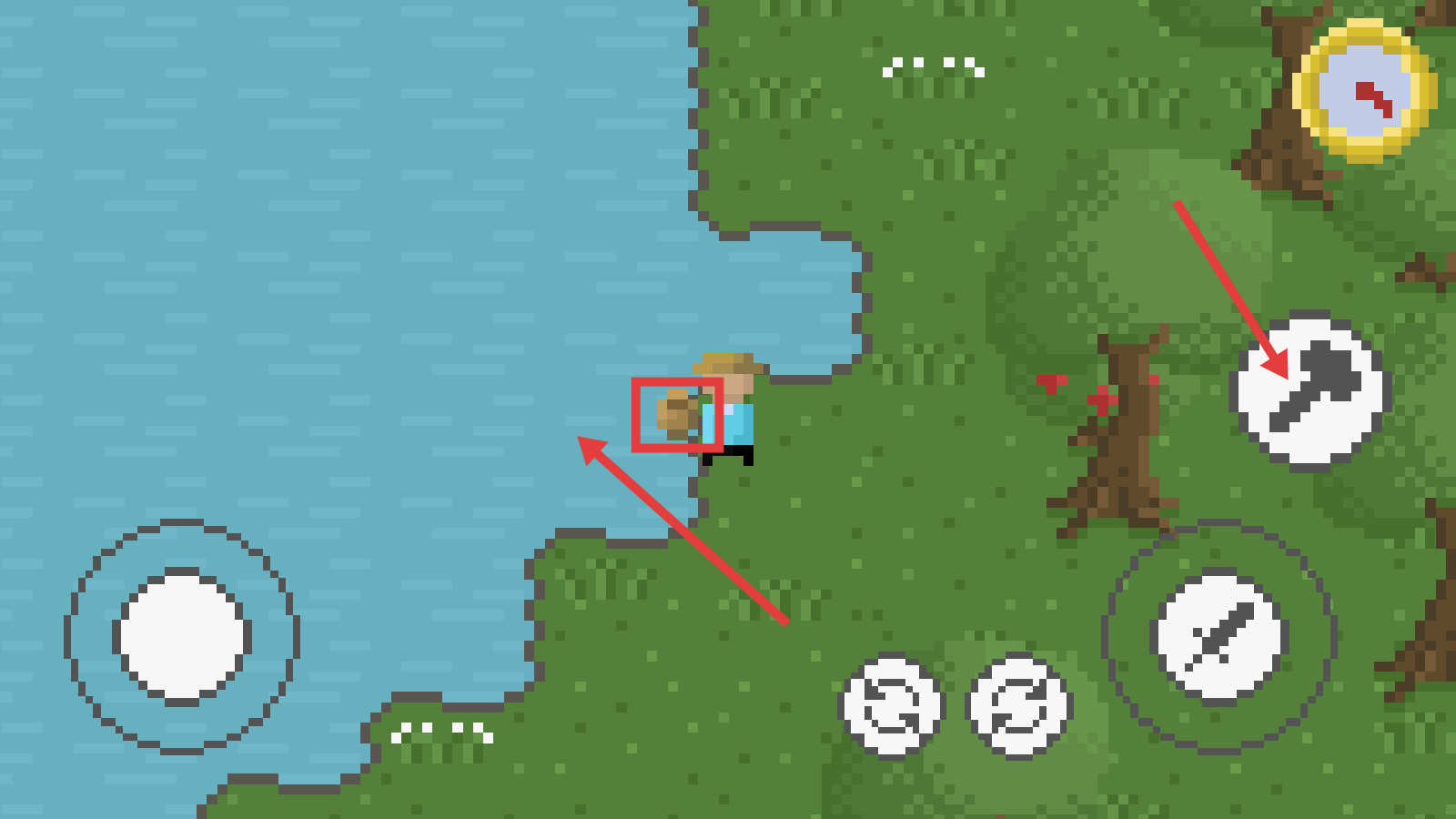 1、复古像素风格构建核心场景,画面清晰流畅,复古质感贴合休闲氛围,让玩家快速沉浸熟悉又新鲜的沙盒环境。