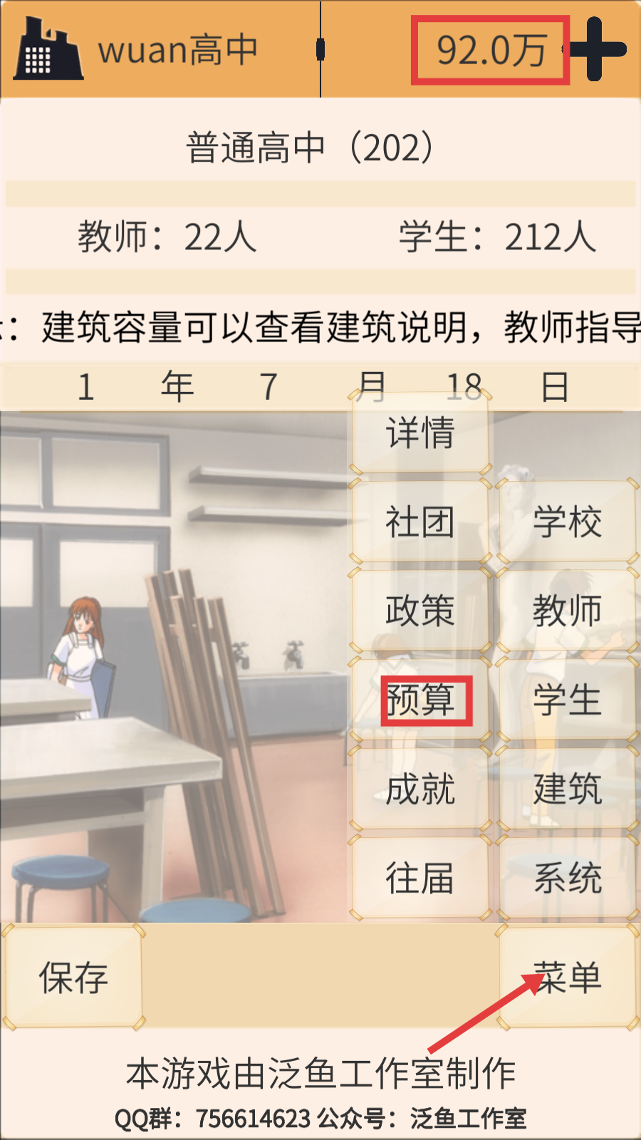 1、进入菜单点击【预算】,查看【92.0万】资金状况,了解财政收支,为学校经营做资金规划。