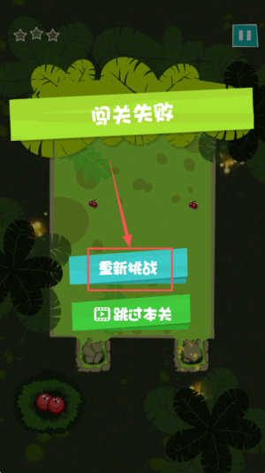 4、最后,若仅获“★☆★”并显示“闯关失败”,可按“重新挑战”再来一次,或选“跳过本关”进入下一关。