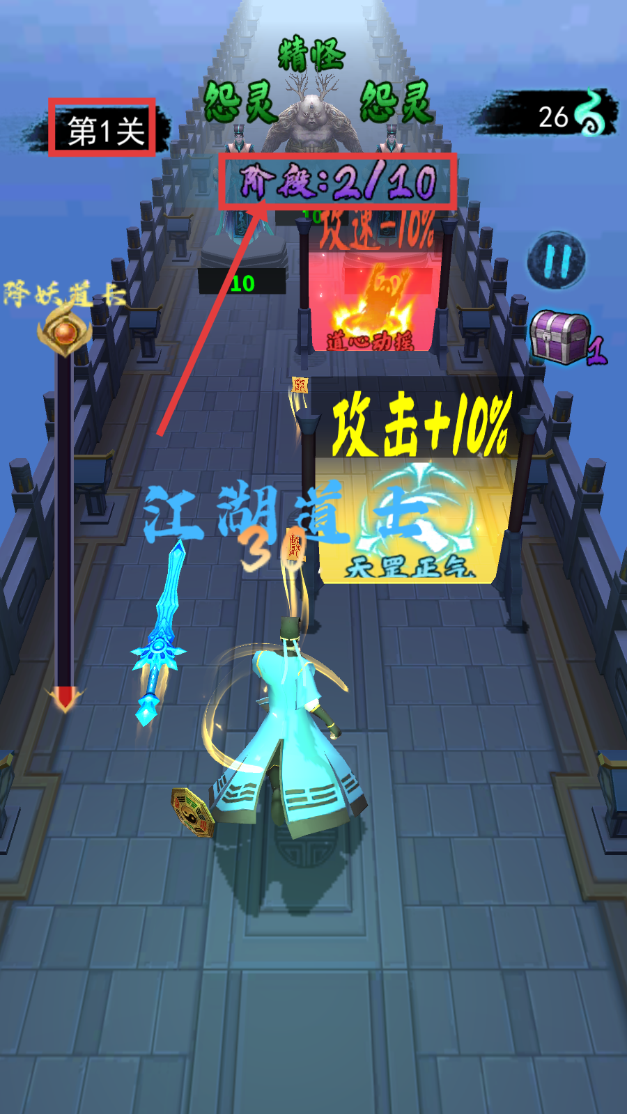 4、逐步推进关卡阶段(如阶段2/10),持续战斗积累技能与属性,完成第1关10个阶段的挑战,通关后解锁后续关卡及更多功能。