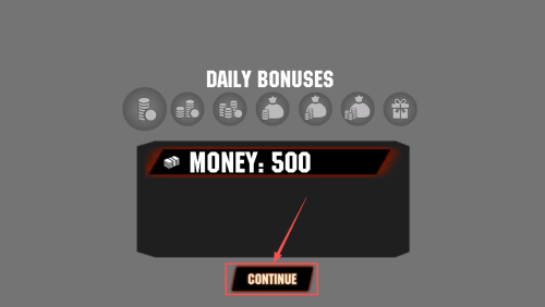 2、领取每日奖励:在每日奖励界面,点击“CONTINUE”按钮领取奖励并继续游戏。