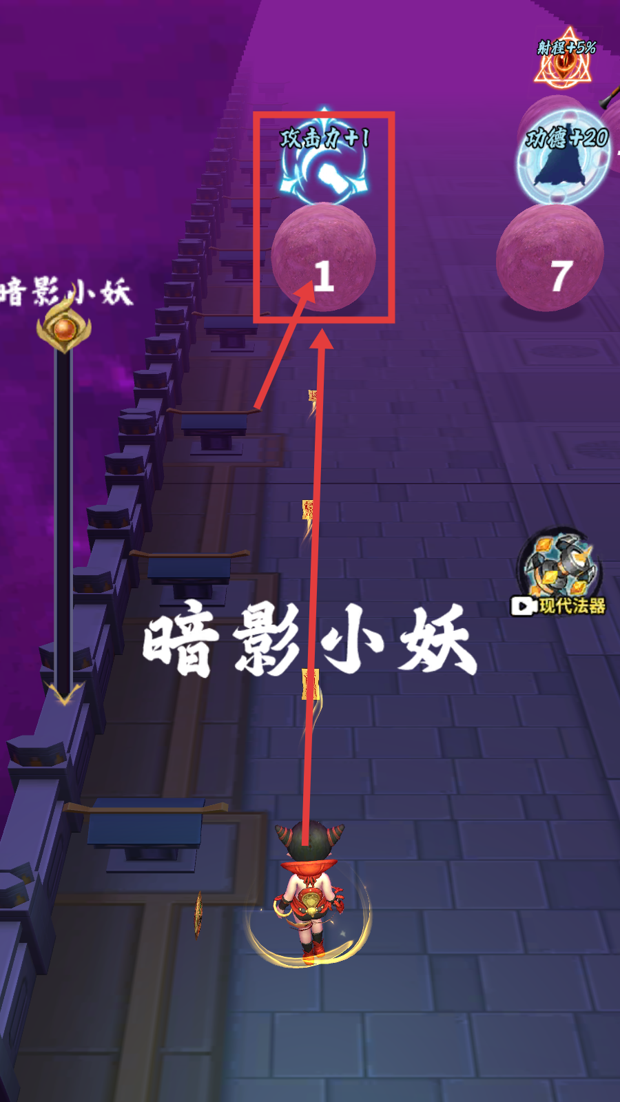 3、在【暗影小妖】关卡中,优先获取【攻击力+1】buff,提升对暗影小妖的伤害,推进关卡进度。