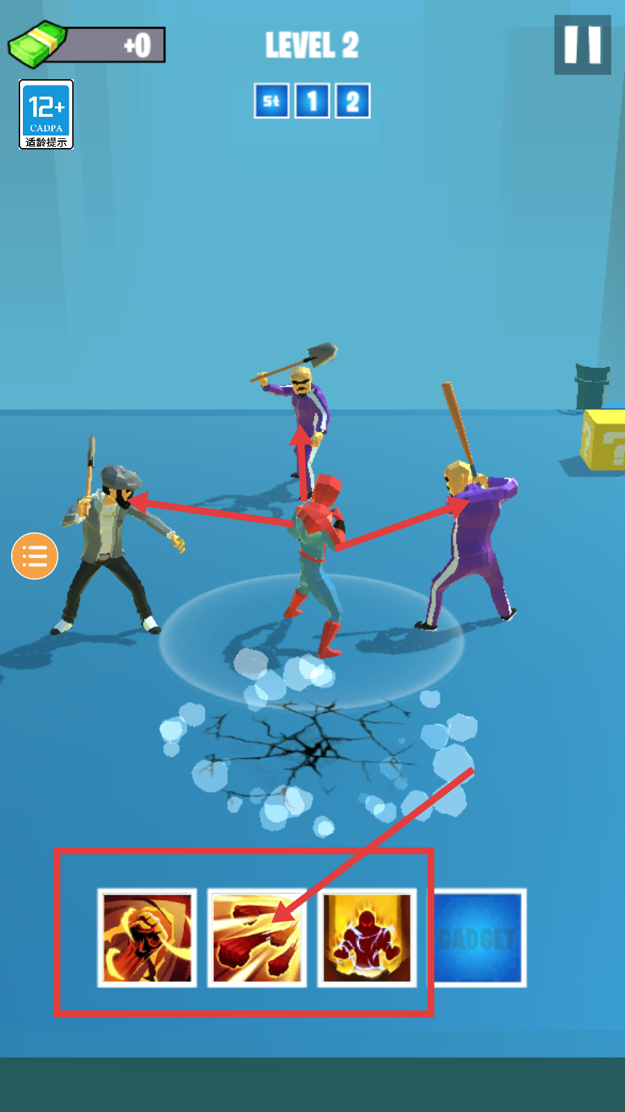 2、在LEVEL2战斗中,利用下方技能图标释放技能,快速击败多名敌人推进关卡。
