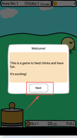 1、进入 Area No.1,轻触“Welcome!”界面,点击“Next”按钮,即可正式开局。