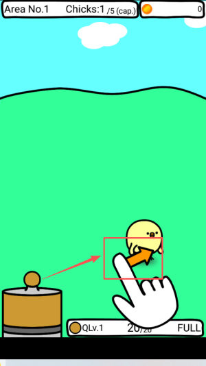 3、立刻轻点食槽图标,把饲料拖进区域,赶在 9 秒内完成投喂,让小鸡继续成长。
