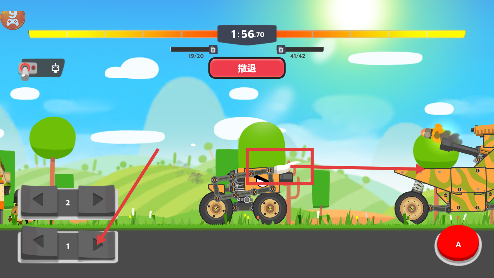 3、战斗中用1号方向键移动坦克,点击红色【A】按钮,利用【尖刺】攻击敌方坦克。