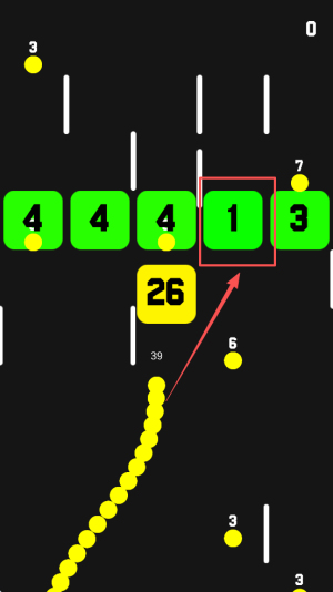 3、然后,留意方块上的数字 26、39 等,它们表示需要撞击的次数,通过反弹消除全部方块。