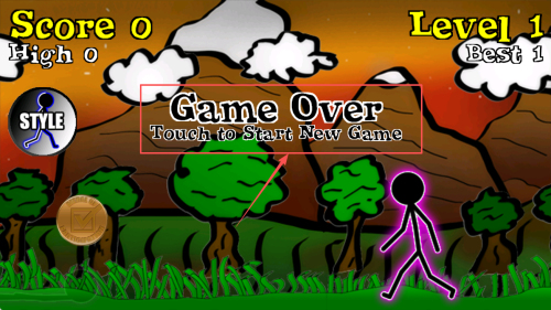 4、重新开始:游戏结束后,点击“Game Over”提示上的“Touch to Start New Game”按钮,重新开始游戏。