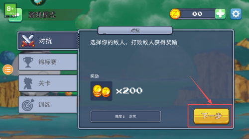 2、选择模式:在游戏模式界面,点击“对抗”按钮,选择对抗模式。