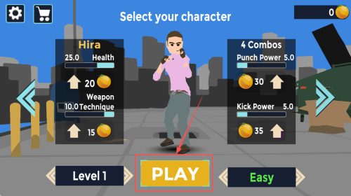 2、开始游戏:在角色信息界面,点击“PLAY”按钮,开始游戏。