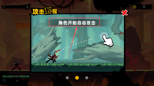 3、自动攻击:在教程界面,了解角色将开始自动攻击靠近的敌人。