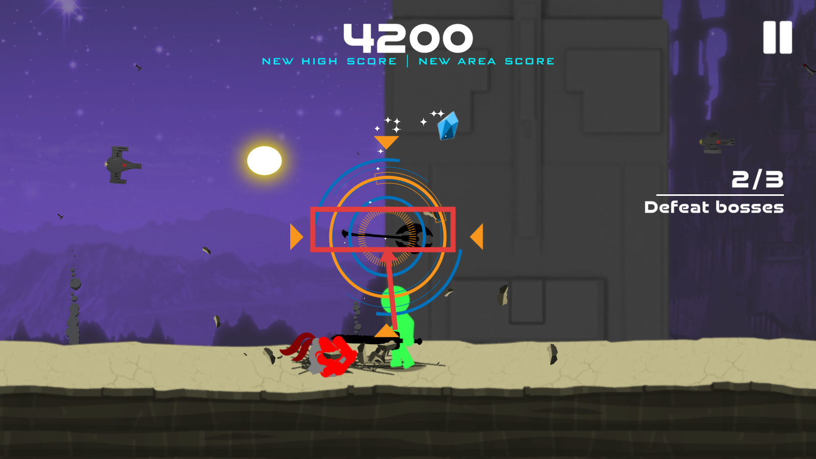 3、瞄准boss攻击,得分【4200】,同时收集蓝色钻石,完成击败boss的任务进度。