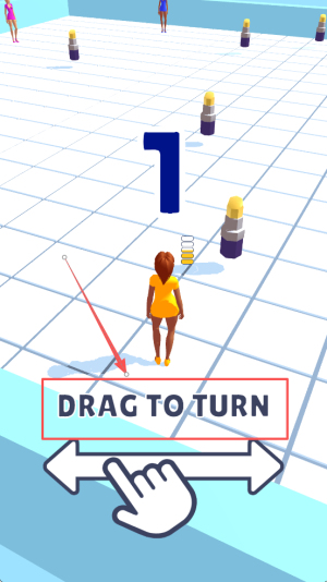 2、接着,按提示“DRAG TO TURN”左右拖拽控制转向,保持车速并避开障碍。