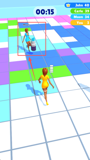 2、控制角色行走:通过手指点击操控小姐姐在场景移动,确保走过的区域留下颜色,逐步扩大己方涂色范围。