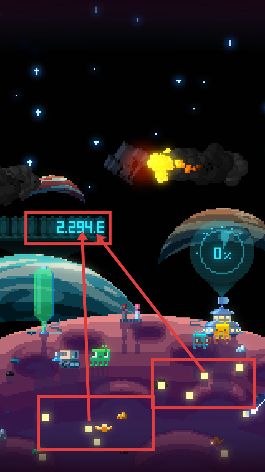 2、收集星球上的金币和E值资源(如积累2.294.E、11.278.E等数值),资源是升级和推进游戏的核心要素。