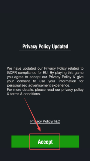 1、首先,点击“Accept”同意个人信息用于个性化广告并正式进入游戏。