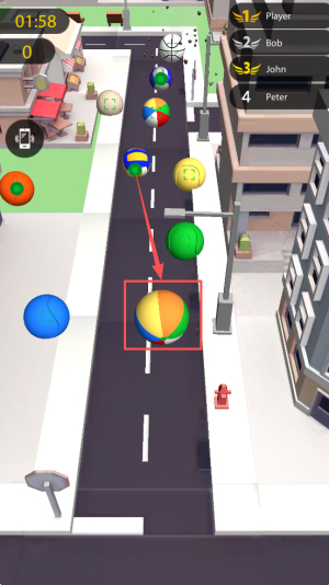 2、操控球球破坏:控制球球在城市街道移动,撞击小件物体积累成长值,逐步提升破坏力,向高楼大厦发起冲击。