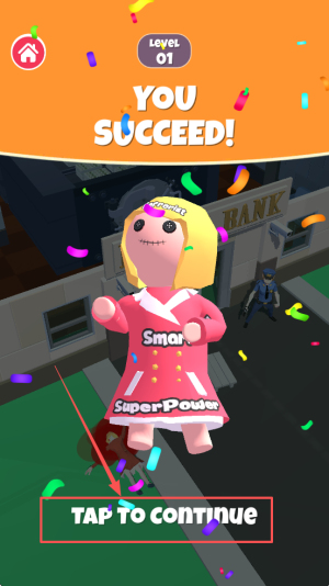 4、最后,当画面弹出YOU SUCCEED! SuperPower提示,点击TAP To conTInue即可进入下一关。