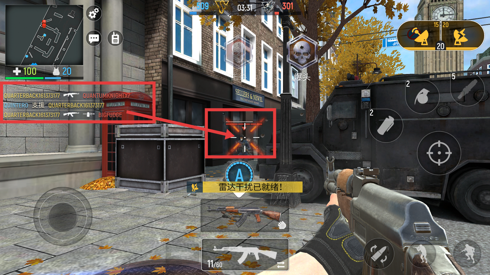 4、关注团队支援信息,利用【雷达干扰】技能,配合队友打击敌人,提升战绩,积累战斗优势。