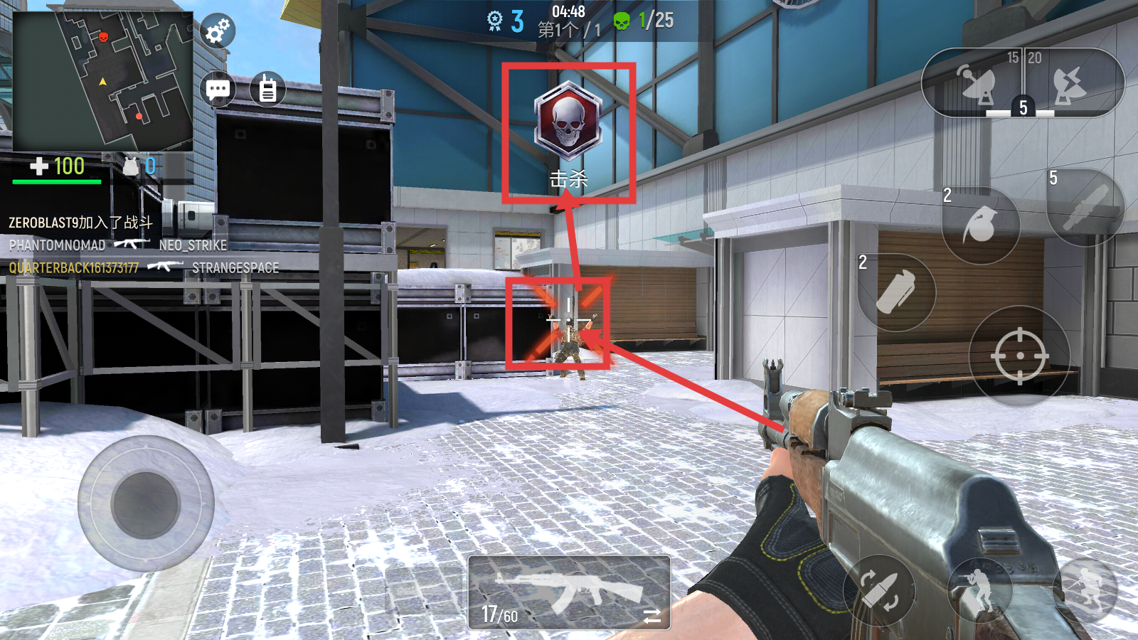 3、战斗中瞄准敌人,使用【AK-47-17/60】射击,成功击杀敌人,积累战绩。