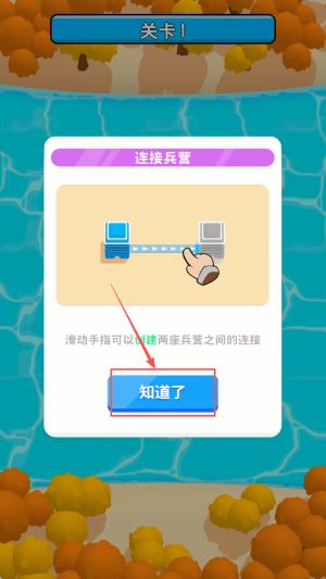 2、按提示「滑动手指」把两座兵营连成一线,兵力立即汇合。