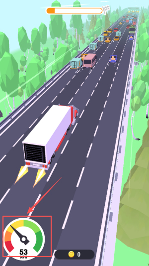 2、操控货车行驶:通过传感器与陀螺仪控制货车方向,在拥堵路段横冲直撞,避开阻碍向道路前方推进。