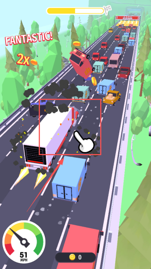 2、画面卡通鲜活:采用卡通风格设计场景与货车,视觉活泼无压迫感,让冲撞过程更具趣味性,缓解视觉疲劳。